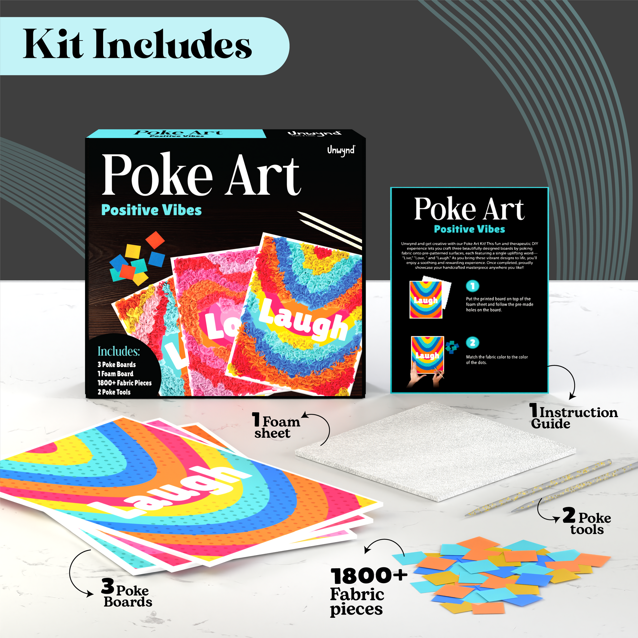 Every kit is made for relaxation, not rush. Depending on the project, it can take anywhere from 30 minutes to a few hours to complete. Take your time — that’s what Unwynd is all about.